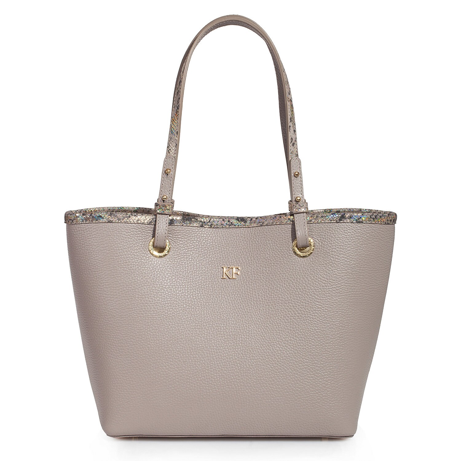 Leather Tote Bag, Gray Beige (light taupe) Leather Tote Bag, Women's Leather Tote Bag KF-3468